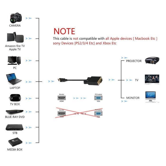 Cabling 2m Hdmi Male Vers Vga Male D Sub Hd 15 Broches M M Adaptateur Connecteur Cable Pour Ecran Pc Lcd Tv Hd Pour Ordinateur Cdiscount Informatique